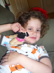 “Being a dog” ranks high among her favorite things to play, which is most annoying during key moments like bedtime when she can’t possibly get undressed by herself and put on her pj’s on because “dogs can’t take their own fur off and I need help to put my new fur on.” I now simply play along and remind my “dog” that after her “new fur is on,” she has an “appointment at the veterinarian,” which provides a no-fuss method of brushing her teeth.